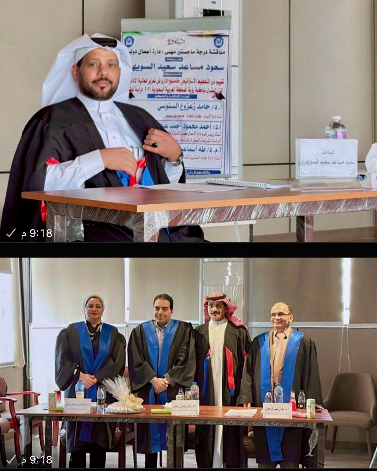 وأشادت ” اللجنة المناقشة بالمستوى العلمي المتميز الذي قدمه الباحثان، وبالمنهجية العلمية المتبعة في إعداد الرسالتين، وما تضمنتاه من نتائج وتوصيات تسهم في دعم قطاع الأعمال وتطوير الممارسات الإدارية.
