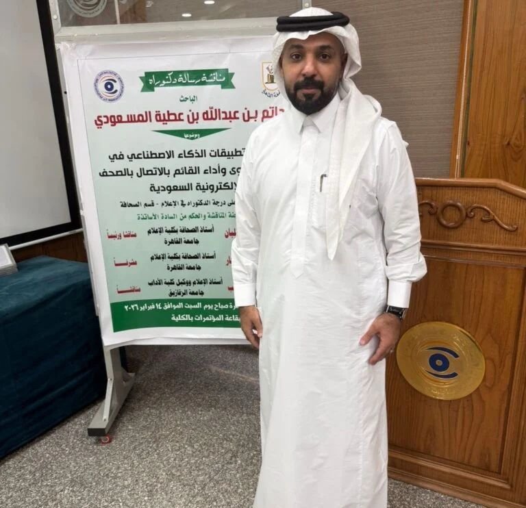 وأكد الدكتور المسعودي أن حصوله على هذه الدرجة العلمية يمثل محطة مهمة في مسيرته المهنية والعلمية، ودافعًا لمواصلة التطوير في مجال الإعلام الذكي، والإسهام في تمكين المؤسسات الإعلامية من توظيف التقنيات الحديثة بصورة تعزز المصداقية والجودة والاستدامة.
