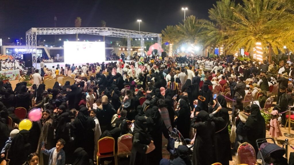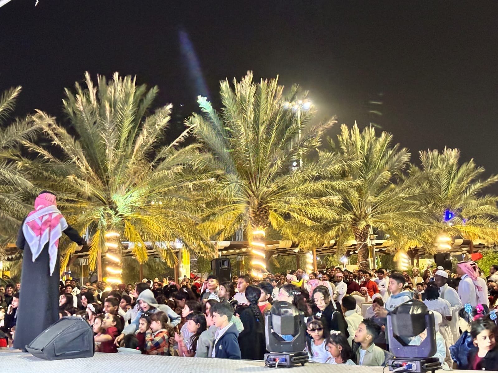 وانطلقت الفعاليات باستقبال الزوار بالهدايا والحلوى والورود وسط حضور كثيف من الأهالي. عقب ذلك انطلق عدد من العروض الشعبية والألعاب النارية والفرق الغنائية وفرق الأطفال احتفاء بعيد الفطر المبارك، وكذلك عروض مسار الضوء التي جذب الانتباه.